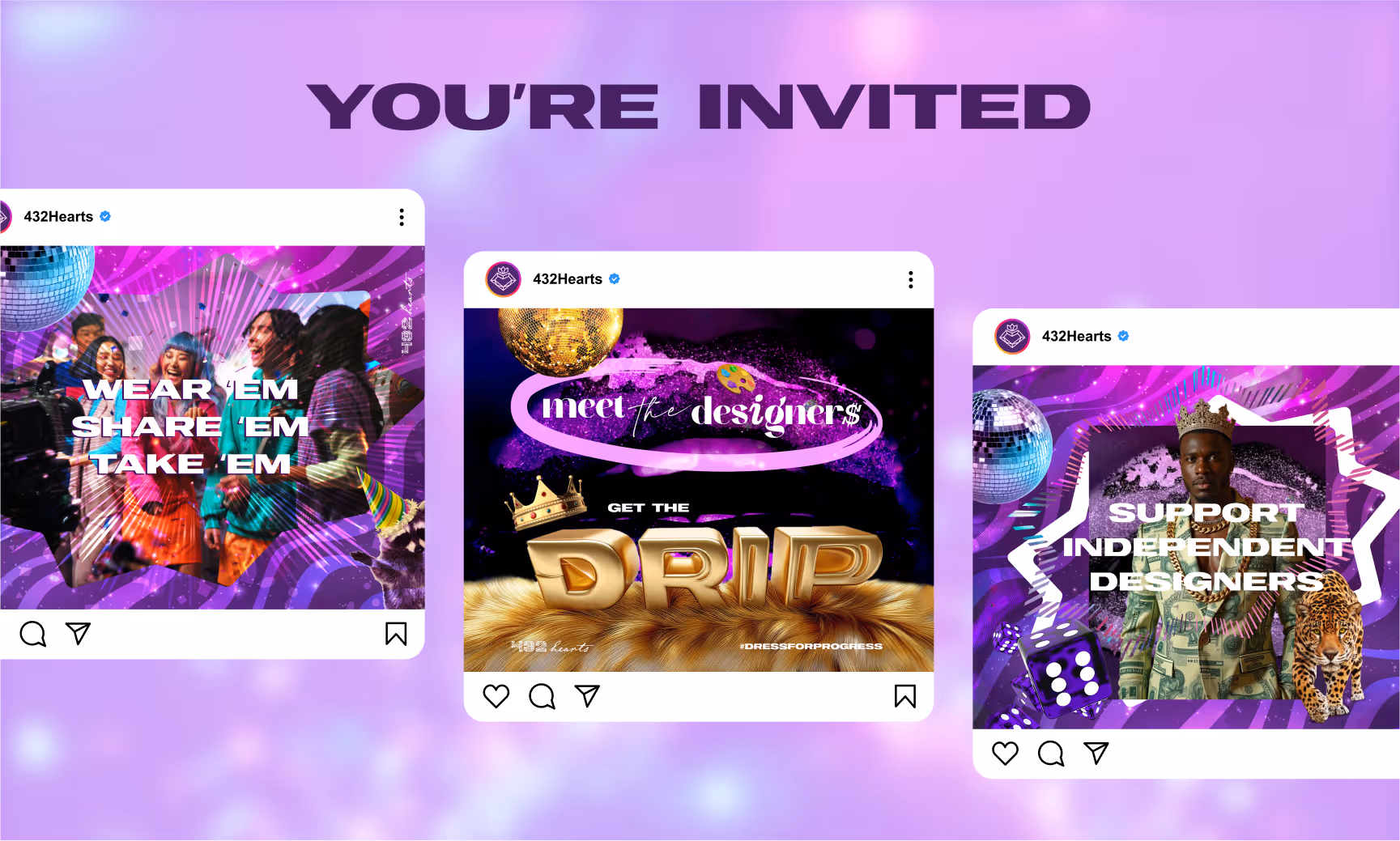 At a 432 Hearts fashion party, everyone is a model. Clothes can be freely worn by attendees and purchased or rented at the end of the night. Designers will be present to rep their brand so the people can meet the makers of the garments they will come to cherish.