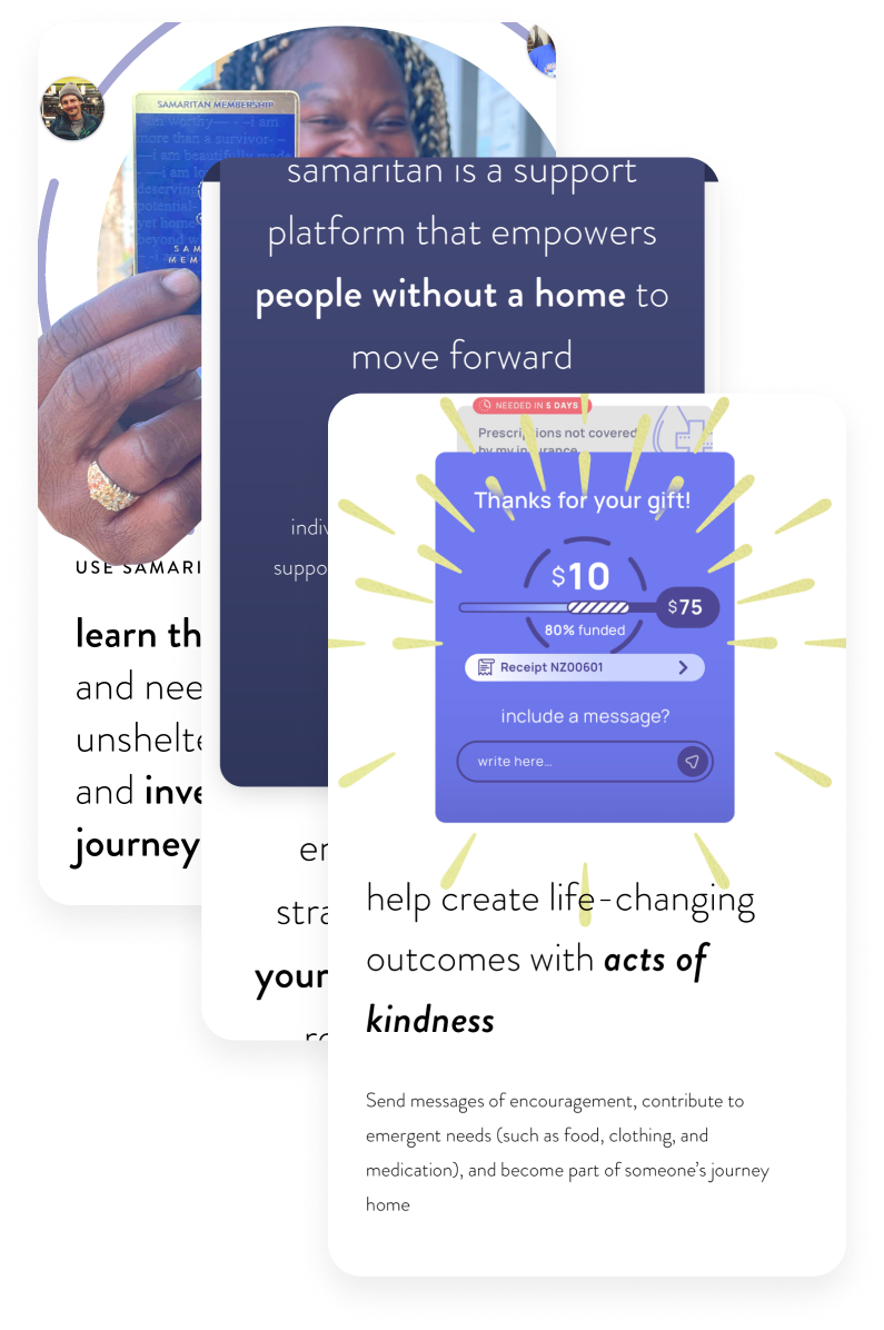 A third party healthcare evaluation done to understand Samaritans' impact in Los Angeles found that access to a Samaritan Membership led to significant healthcare cost savings for health systems and improved health outcomes for unhoused Members.