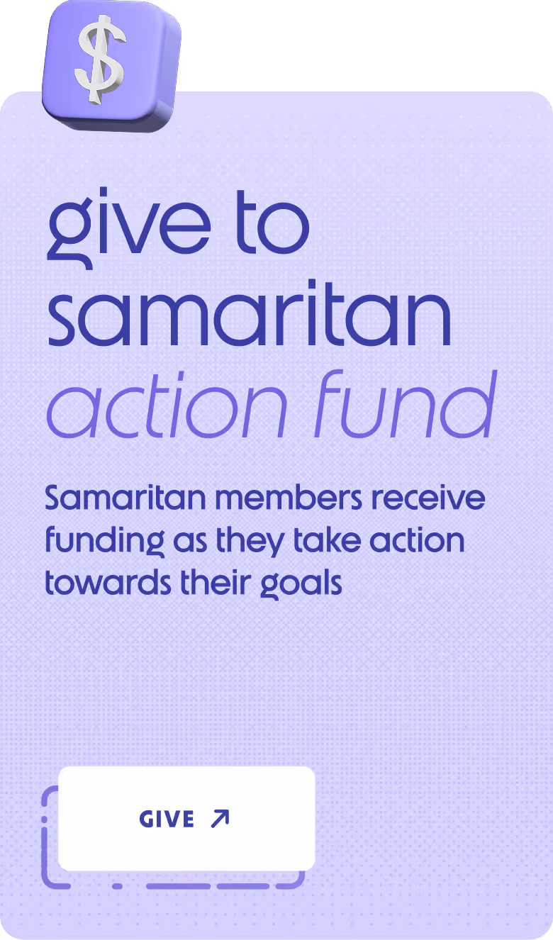 Samaritan members can redeem earned and donated funds at anytime with a companion organization or business to receive goods and services that are meant to serve as aid on their path back to stability.