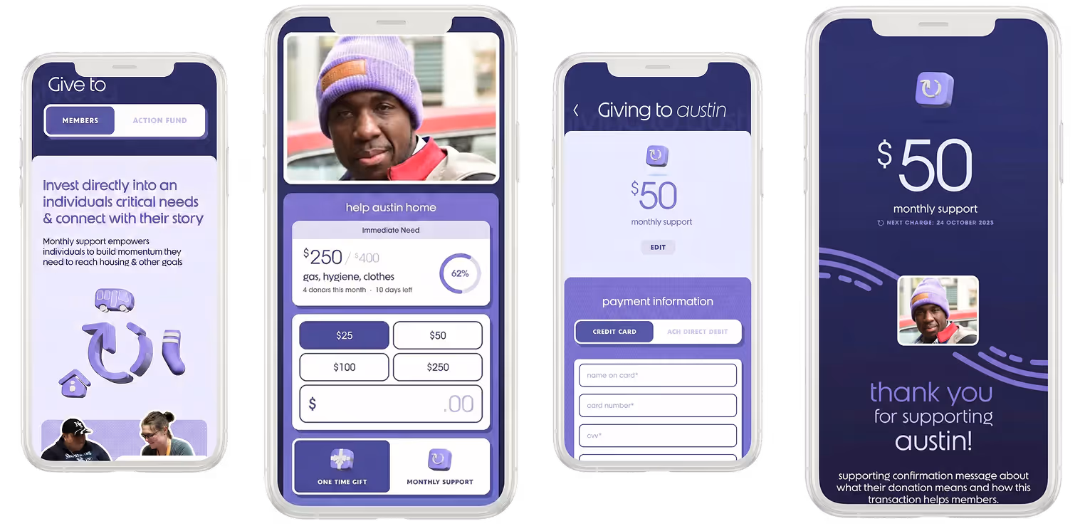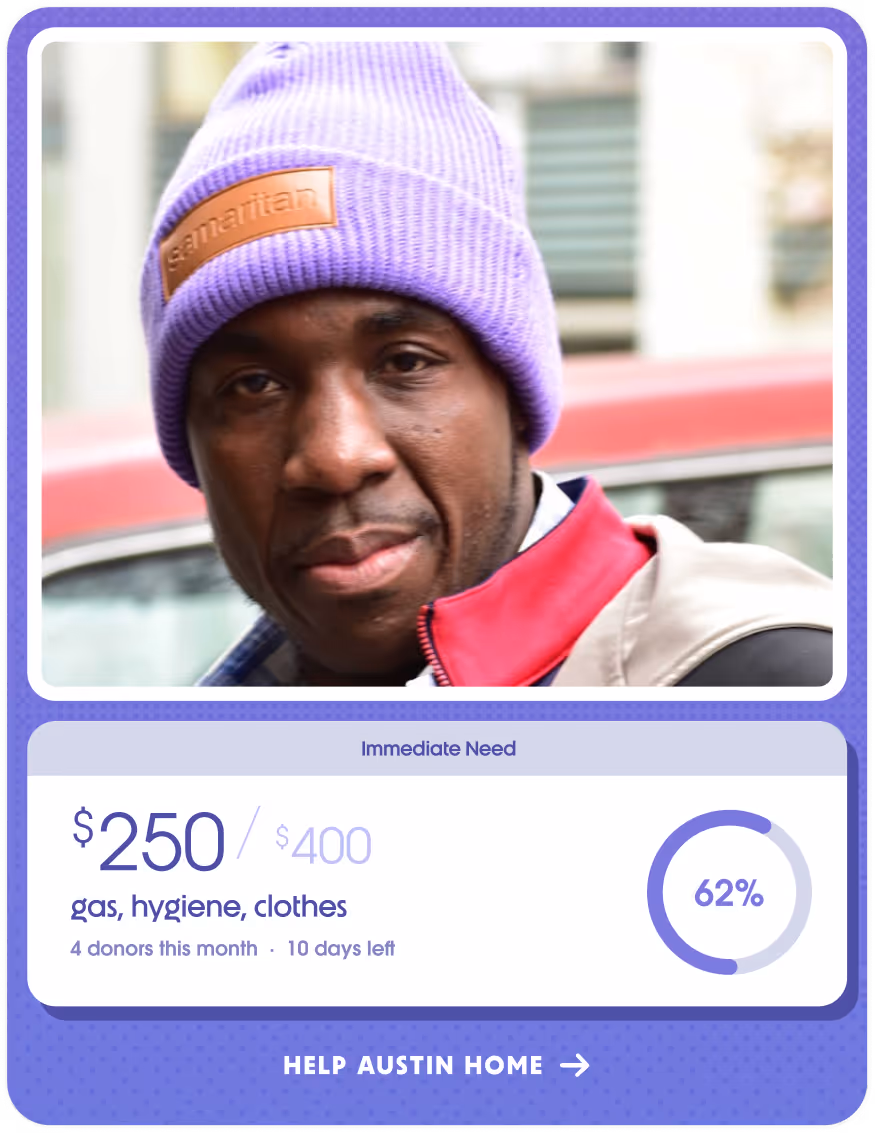 Members of the community can get an opportunity to know unhoused individuals through their profiles, learn about their goals, and contribute to specific needs.